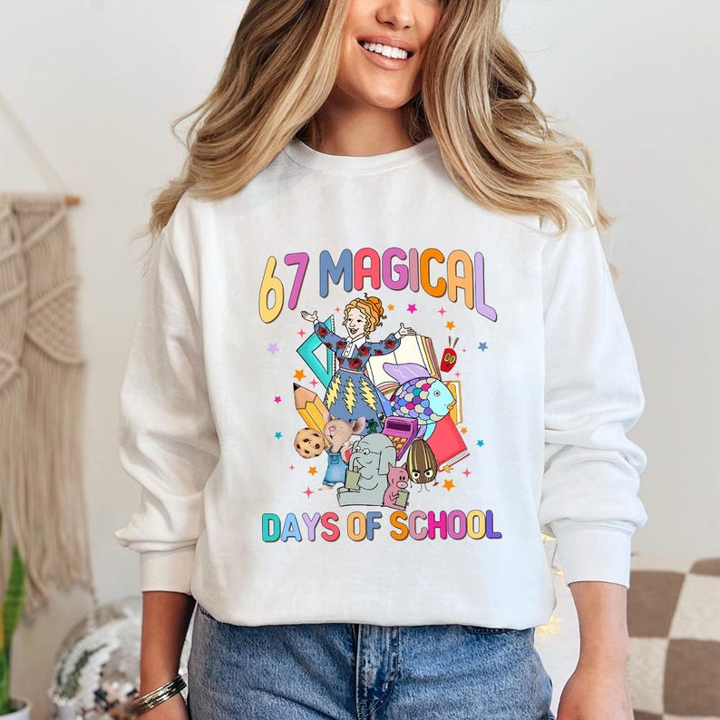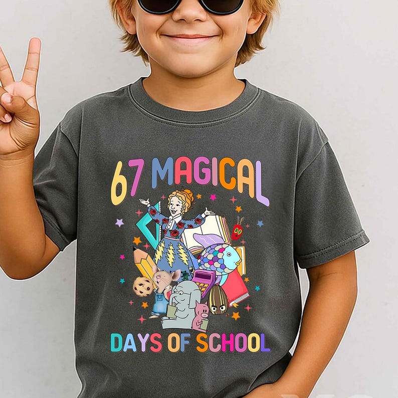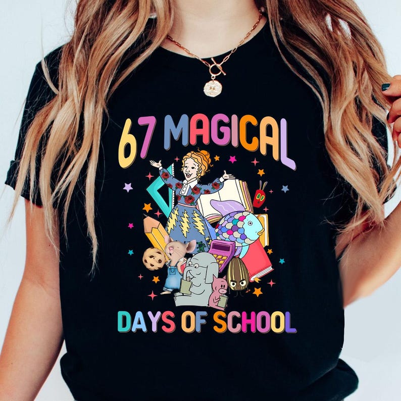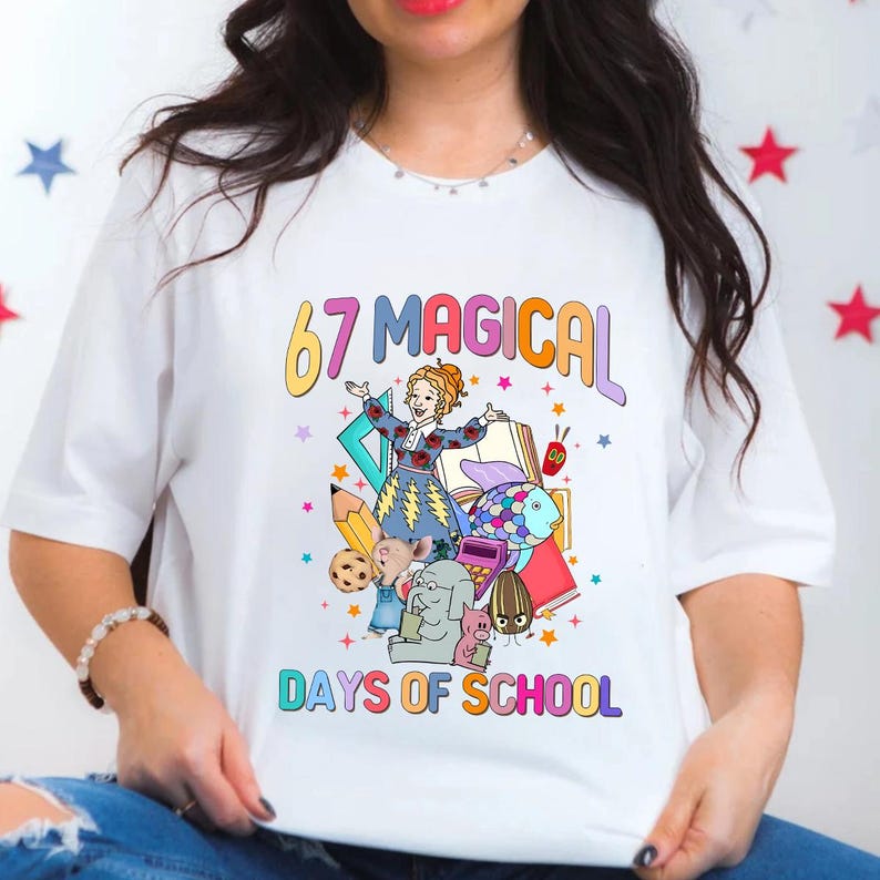 67 Magical Days of School Comfort Colors Shirt, The Magic School Bus Shirt, Teacher Viral Meme Christmas Shirt, Six Seven Meme Gift