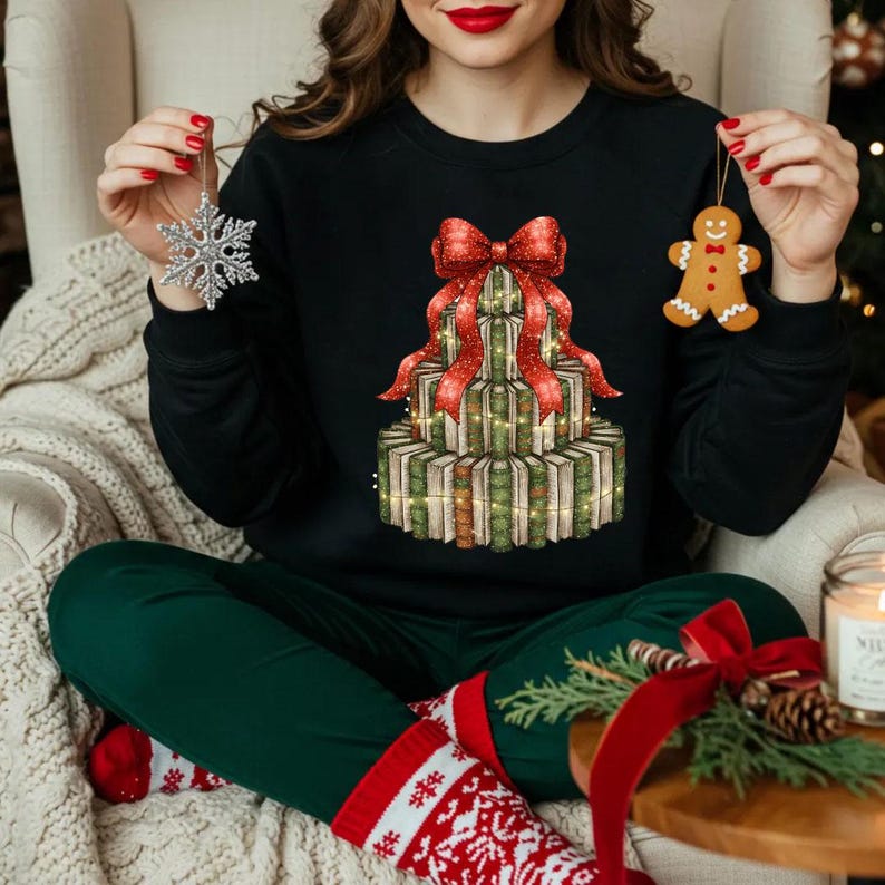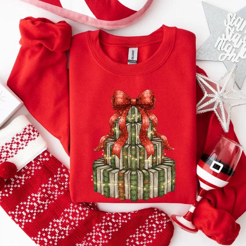 Antique Christmas Book Tree Teacher Christmas Shirt, Librarian Retro Holiday Reading TreeCozy Book Lover, Bookmas Shirt