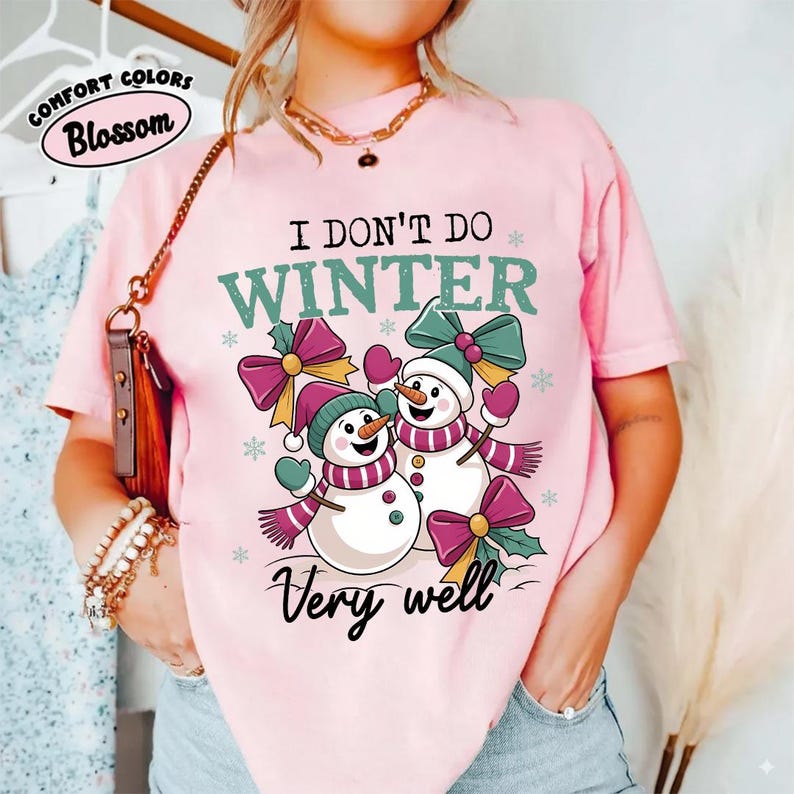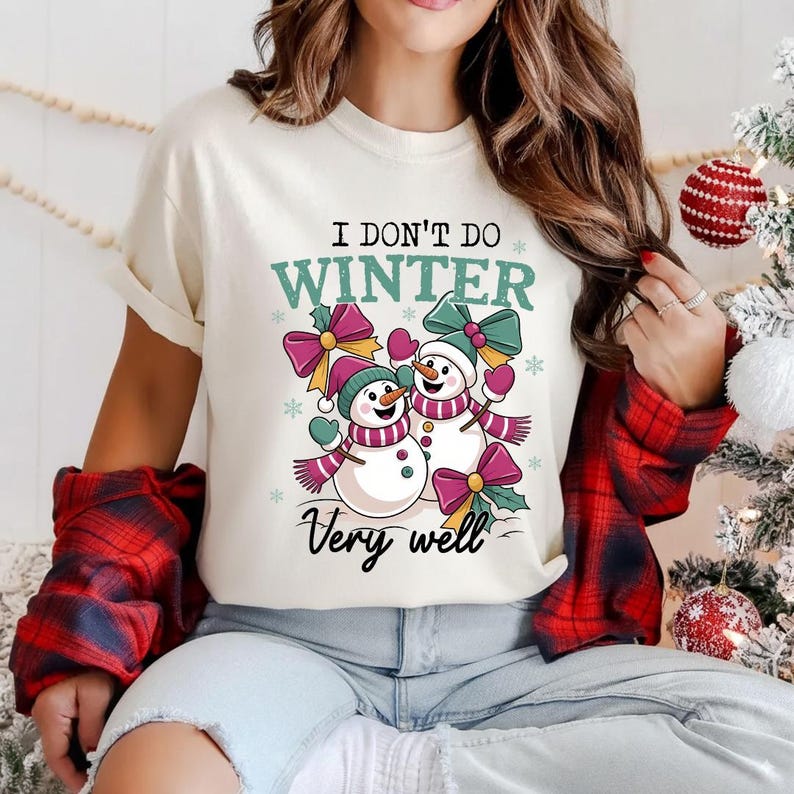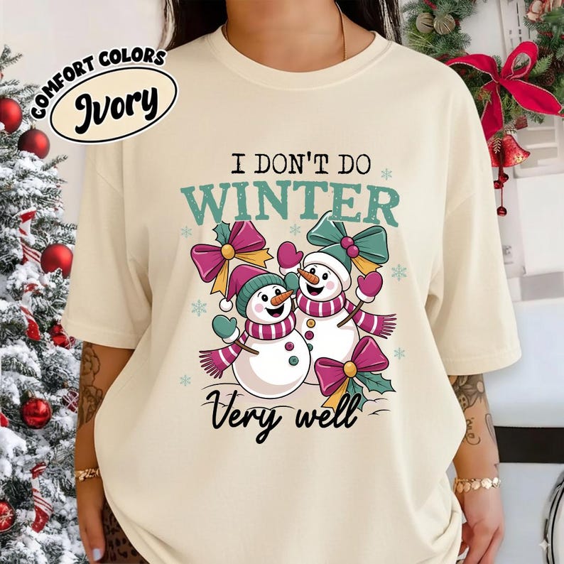 Comfort Colors I Don’t Do Winter Very Well Snowman Shirt, Christmas Coquette Bow Tee, Cold Weather Sublimation, Winter Graphic with Bow