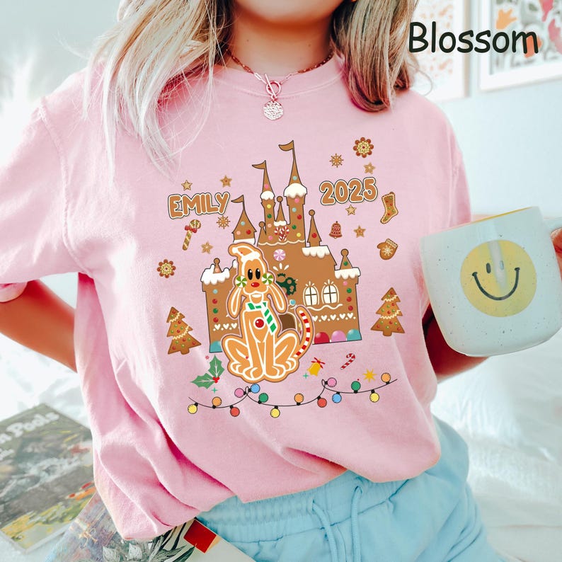 Custom Name Christmas Mickey Gingerbread Shirt, Personalized Holiday Tee, Cute Pink Winter Disney T-shirt, Gift for Girls, Festive Xmas Tee