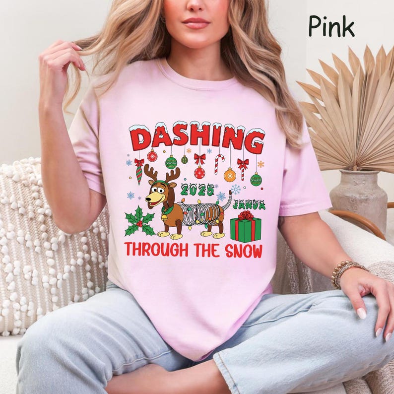 Custom Name Dashing Through The Snow Dachshund Shirt, Personalized Christmas Tee, Cute Holiday Dog T-Shirt, Festive Gift 2025
