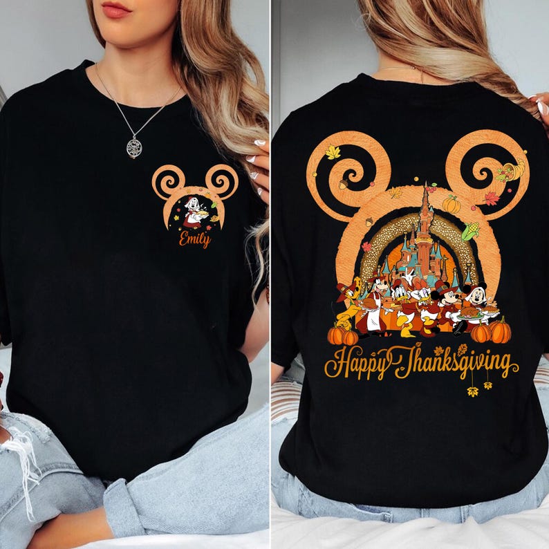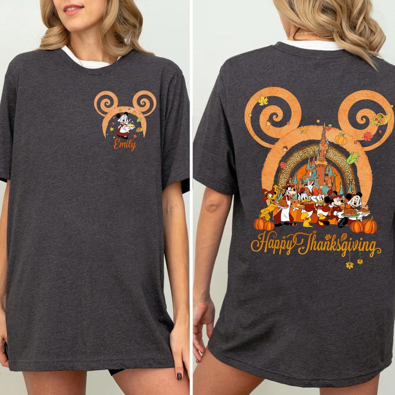 Custom Name Disney Thanksgiving Shirt, Happy Thanksgiving Mickey Friends Tee, Personalized Fall Family T-Shirt, Custom Name Autumn Tee