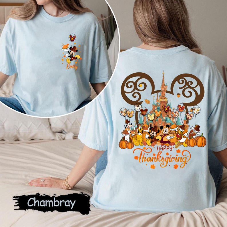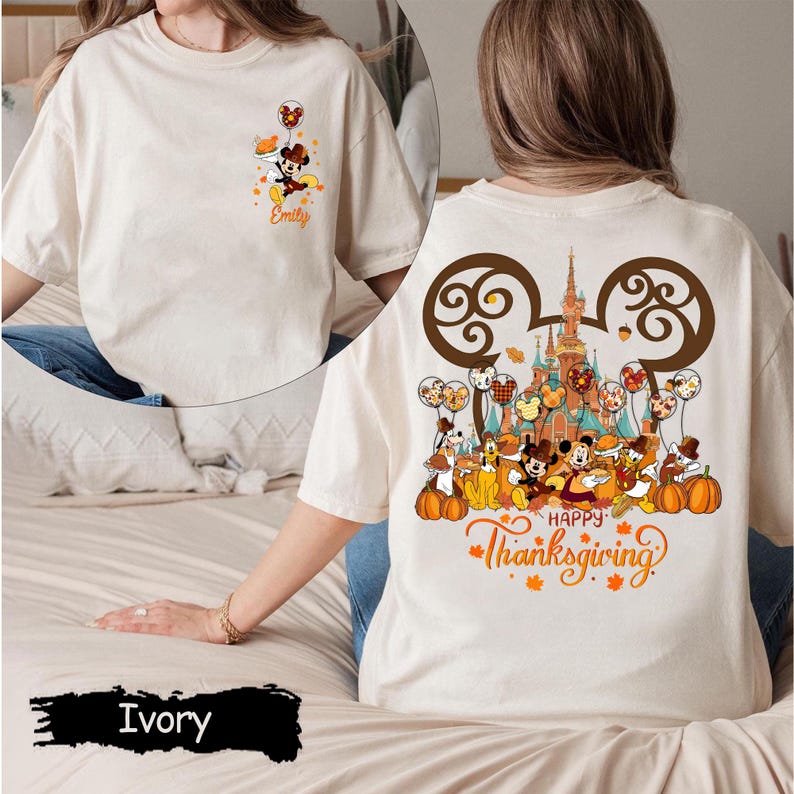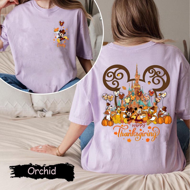 Custom Name Disney Thanksgiving Sweatshirt, Personalized Mickey Friends Fall Personalized Tee, Happy Thanksgiving Pumpkin Family Top