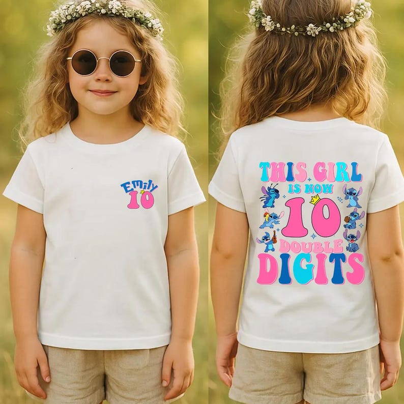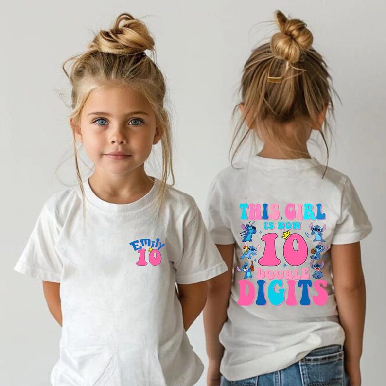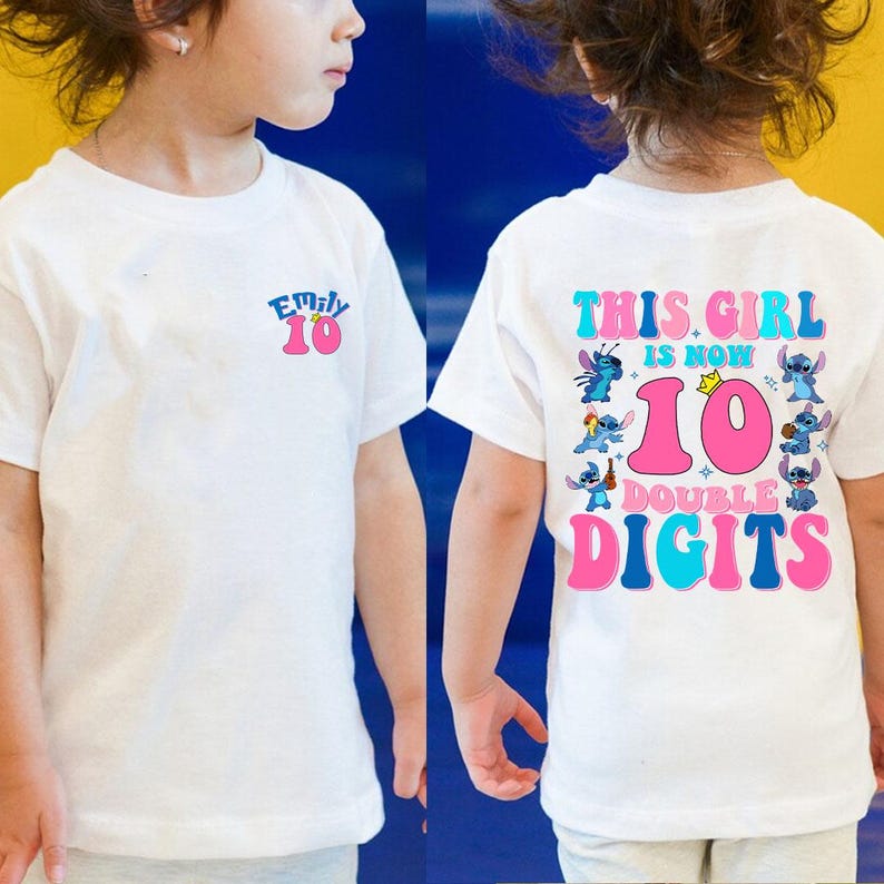 Custom Name Double Digits 10th Birthday Shirt, Stitch Birthday Tee, Stitch 10th Birthday Shirt, Double Digits Girl Shirt