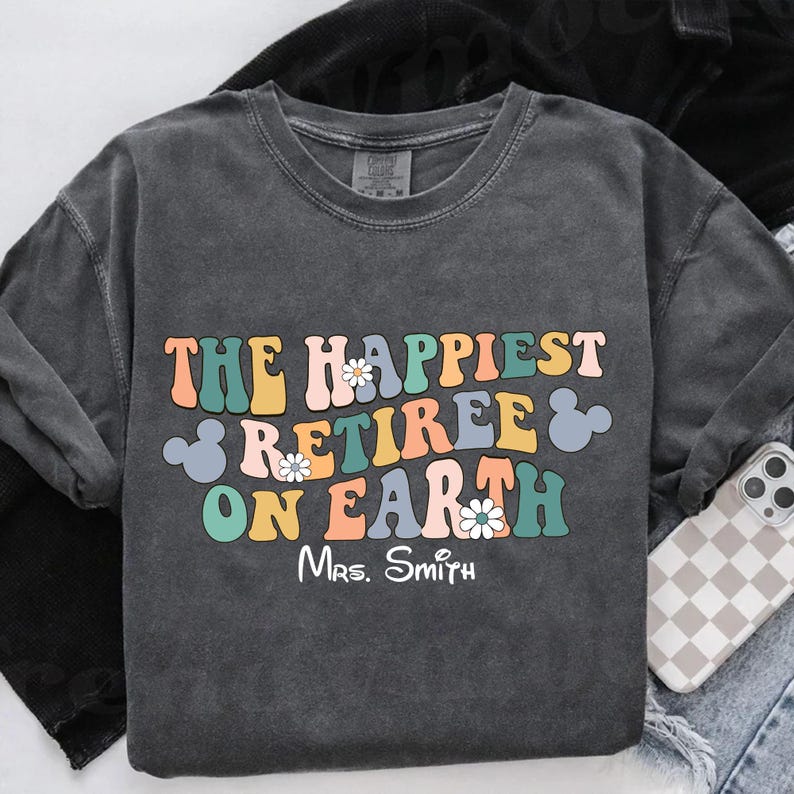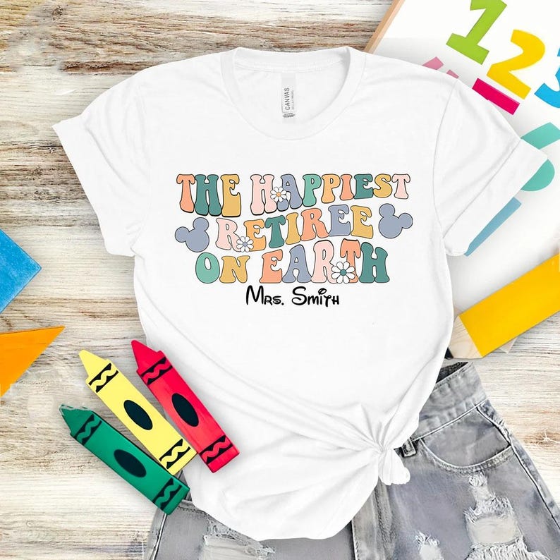 Custom Name Happiest Retiree On Earth Shirt, Disney Retirement Tee, Retired Disney Shirt, Teacher Retirement Tee, Disney Teacher