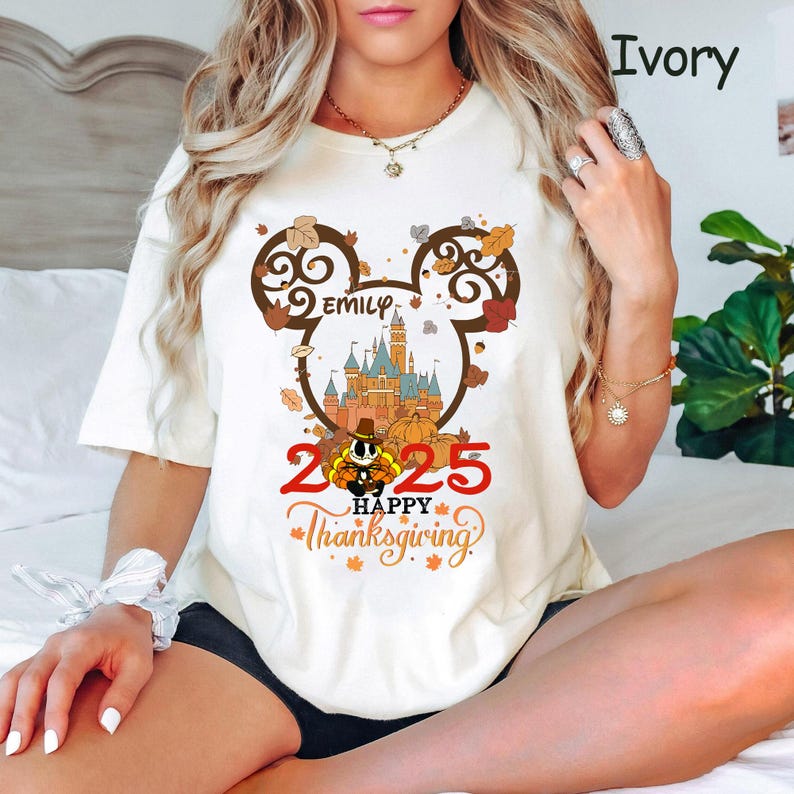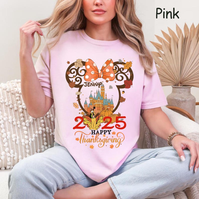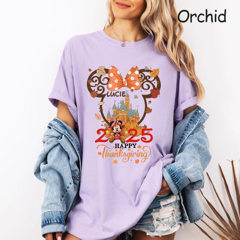 Custom Name Happy Thanksgiving Castle Shirt, 2025 Disney Minnie Family Tee, Disneyland Family Fall Trip Tee, Thanksgiving Day Family Shirt