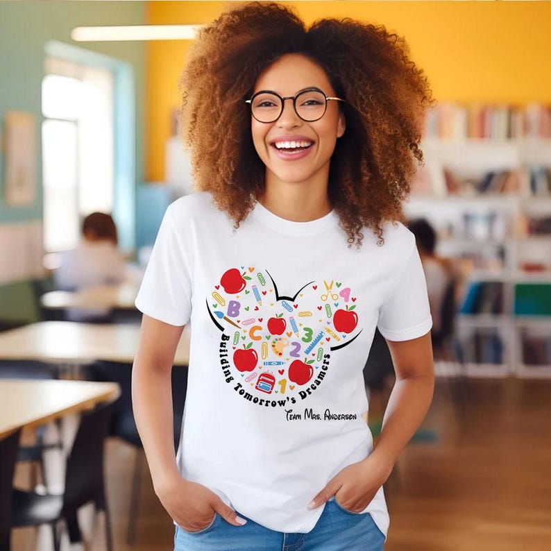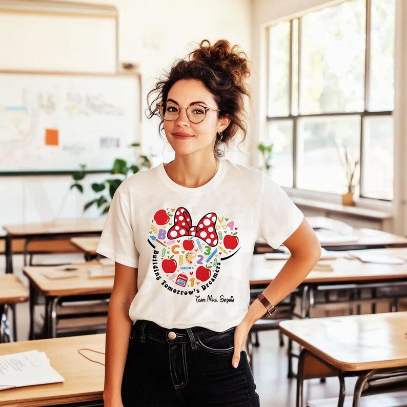 Custom Name Teacher Minnie Shirt, Building Tomorrow’s Dreamers Shirt, School Apple Bow Tee,Teacher Team Shirt, Minnie Bow School Tee