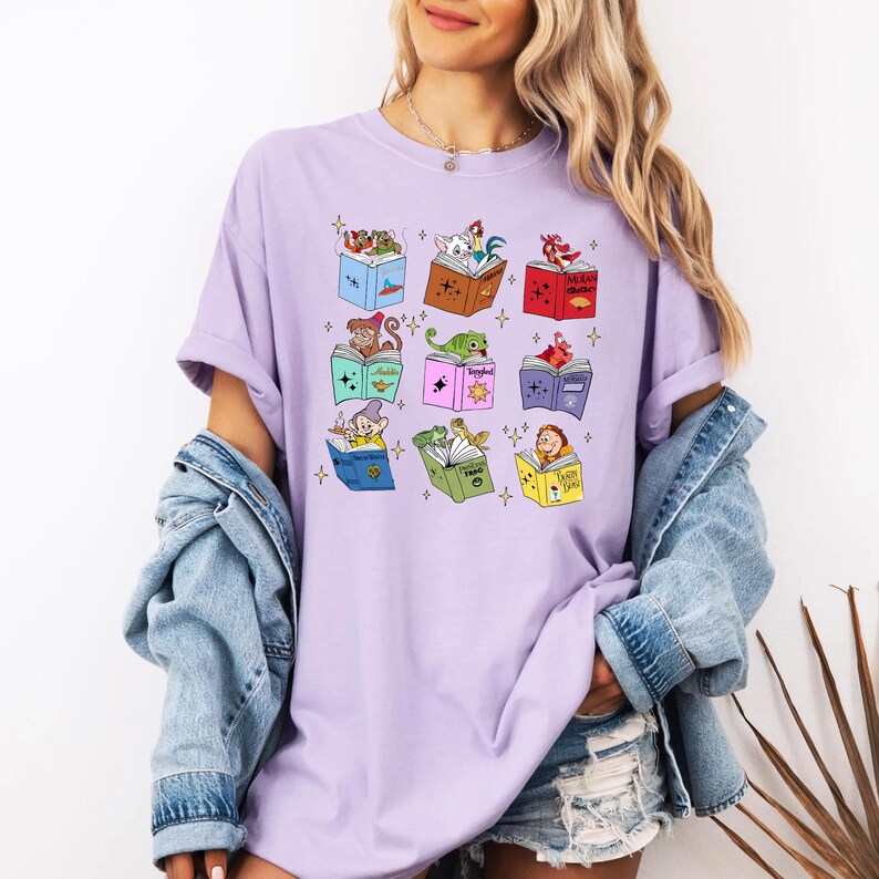 Disney Princess Sidekicks Book Club Comfort Colors Shirt, Book Lover Gift, Disney Reading Tour Tee, Librarian Sweater