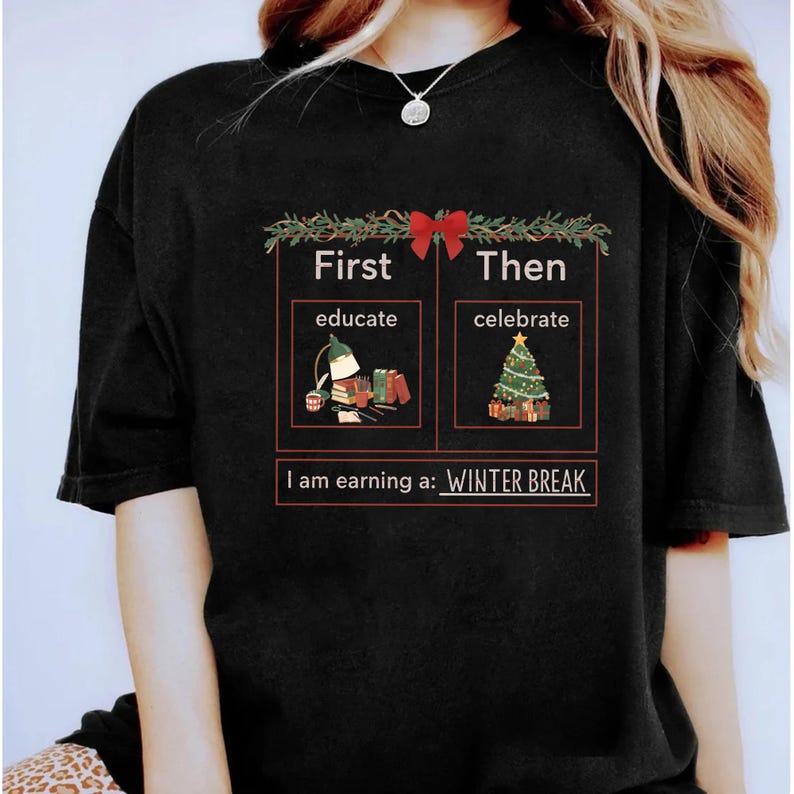 First Educate Then Celebrate Comfort Colors Shirt, Teacher Winter Break Tee, Funny Christmas Classroom Shirt, Holiday Teacher Gift
