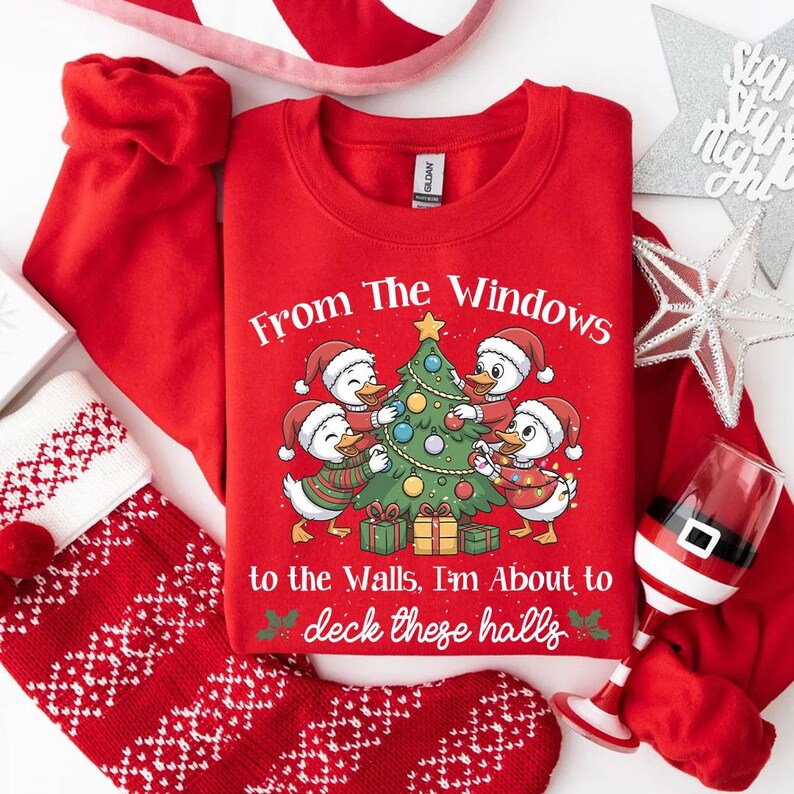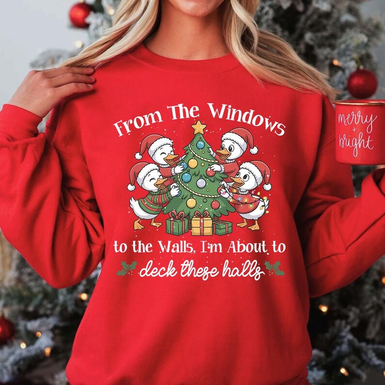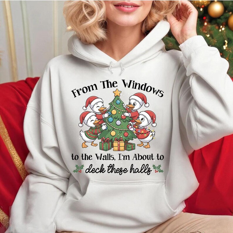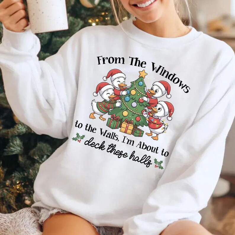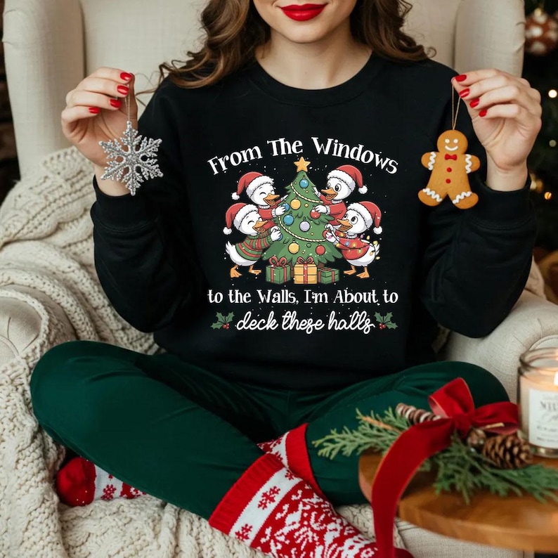 From The Windows To The Walls I’m About To Deck These Halls Sweatshirt, Christmas Duck, Funny Christmas Sweatshirt, Chrsitmas Tree Tee