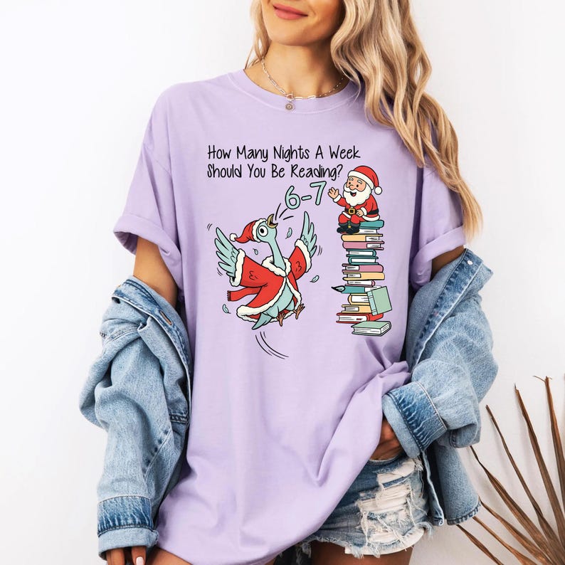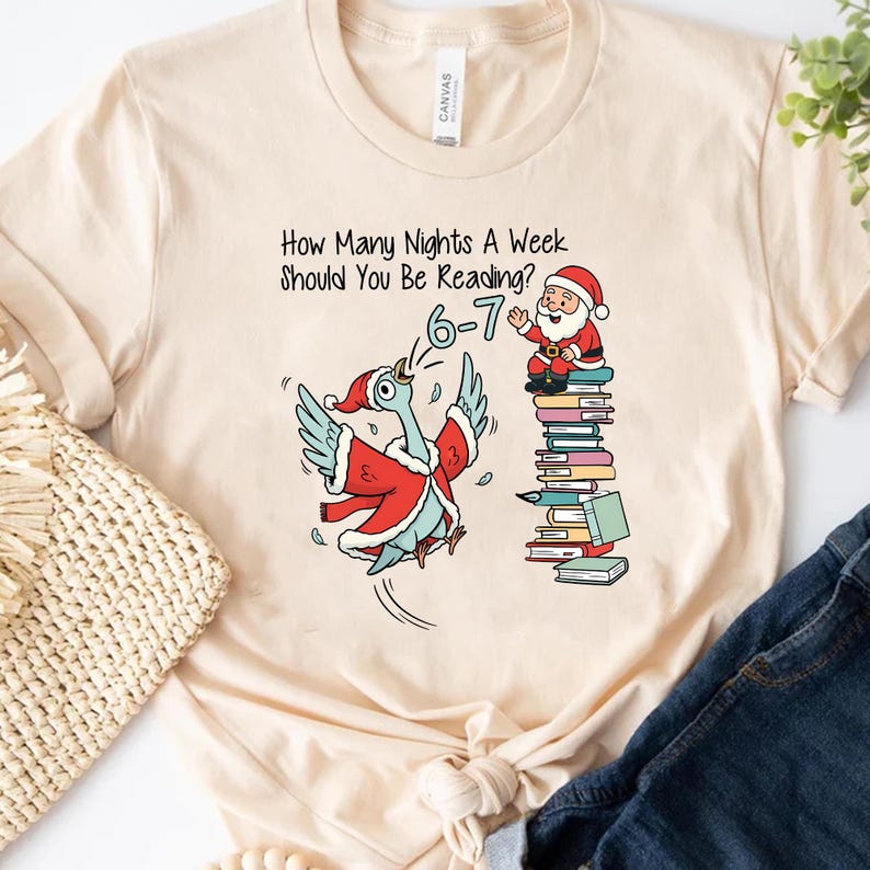 How Many Nights A Week Should You Be Reading 6-7 Christmas Shirt, Pigeon Elephant Piggie Holiday Comfort Colors Tee, Teacher 67 Gift