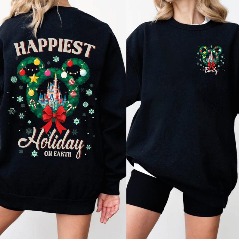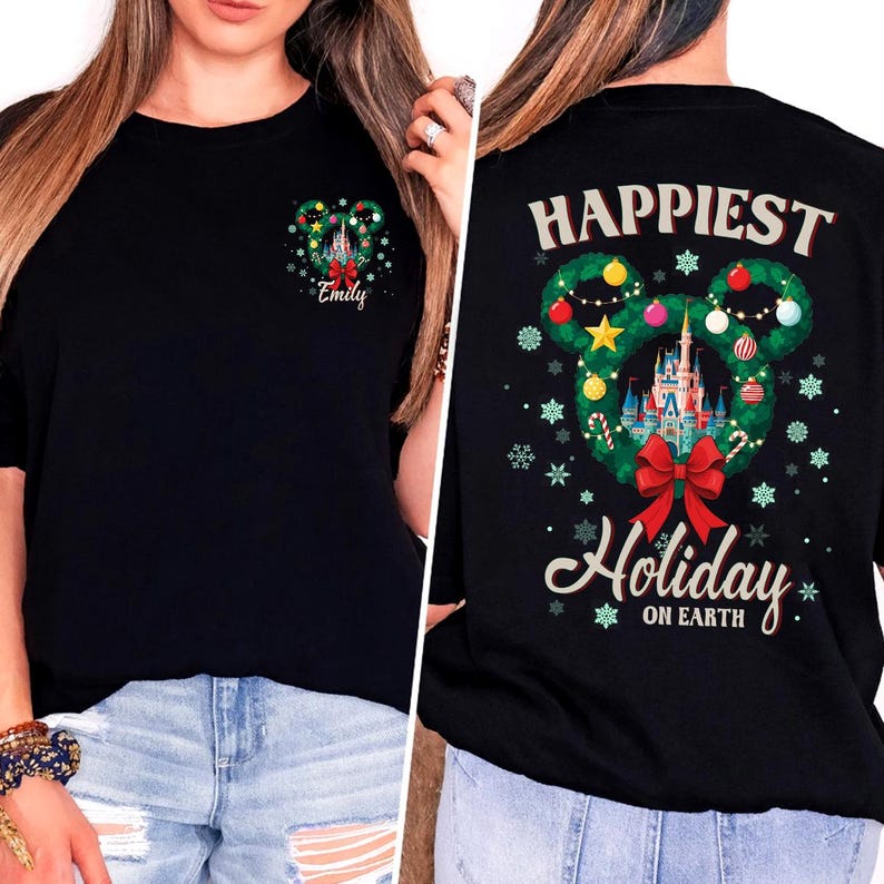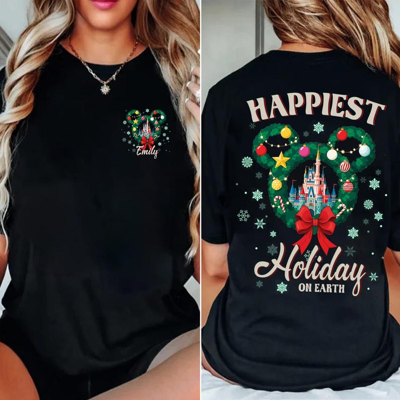 Personalized Disney Halloween 2025 Shirt, Epcot Monorail Tee, Disney Castle Wreath Holiday Shirt, Happiest Holiday on Earth Shirt