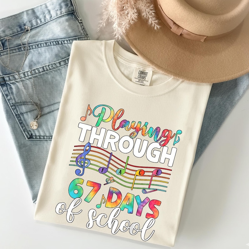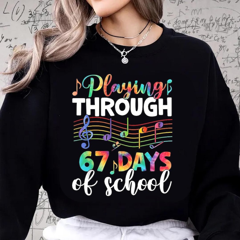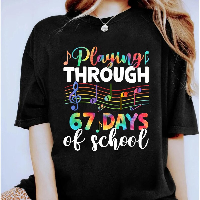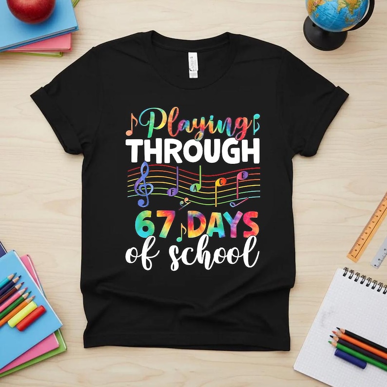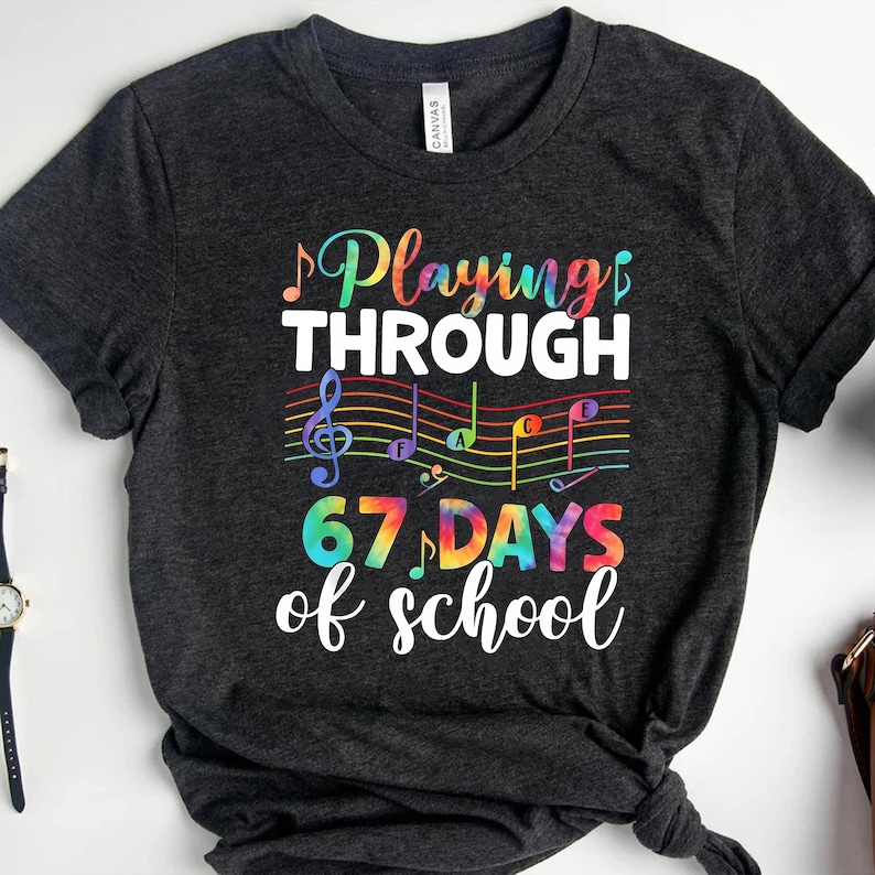 Be the first to review “Playing Through 67 Days of School Music Teacher Kids T-Shirt, 67 Days Milestone Tee, Colorful Music Themed School Shirt”