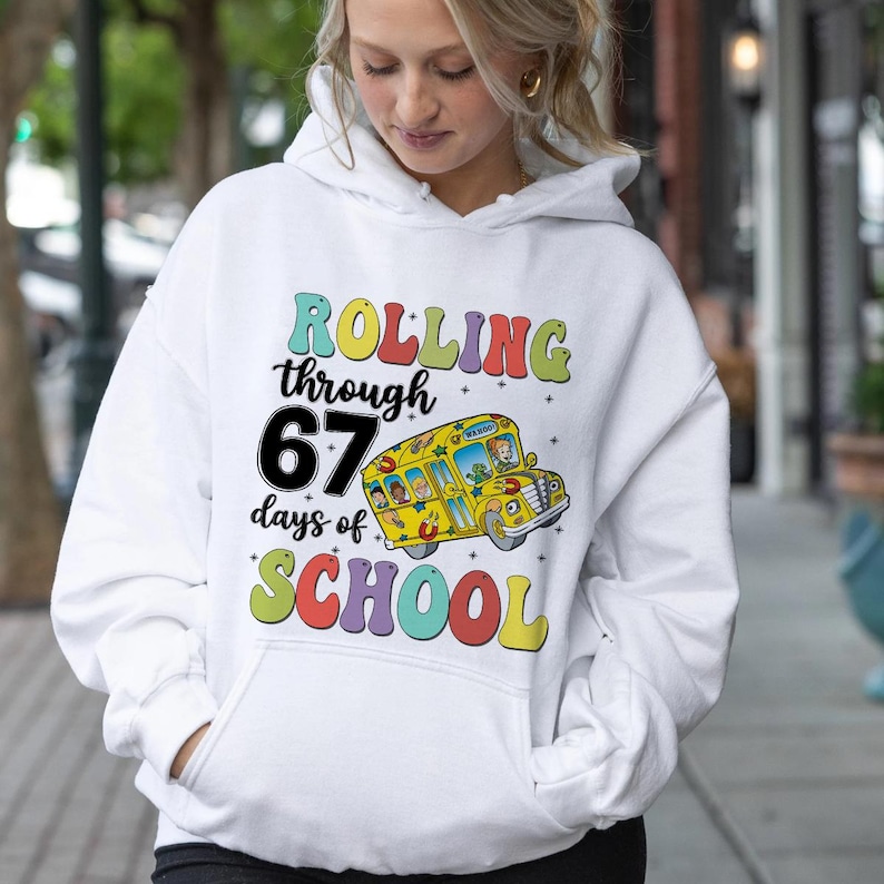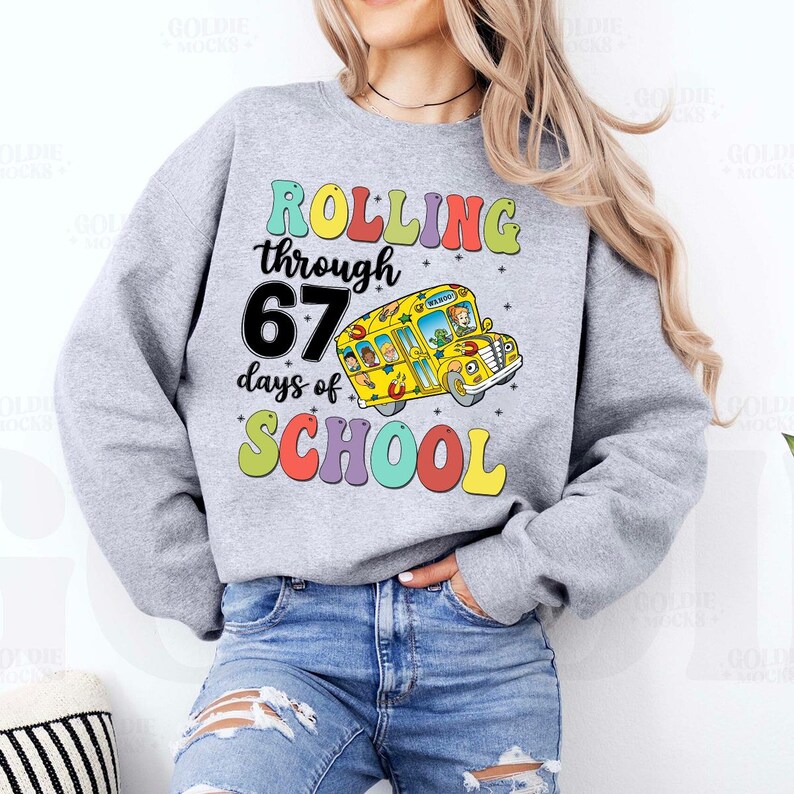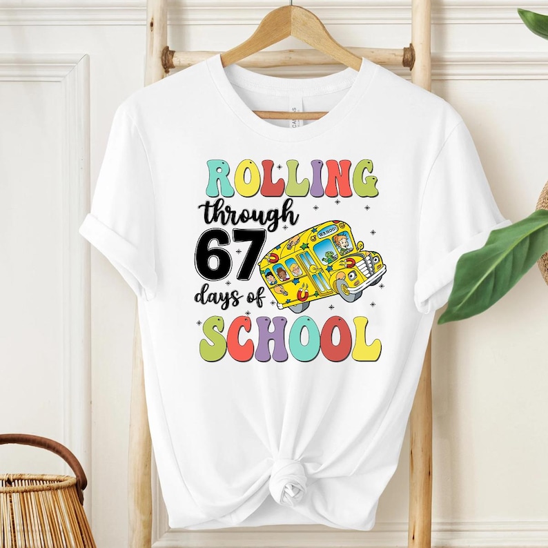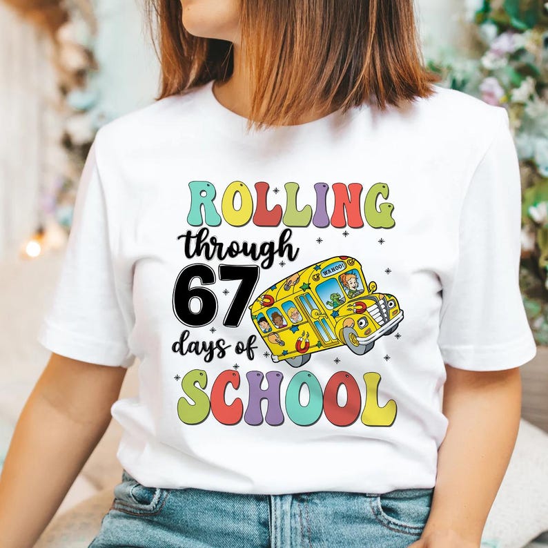 Rolling Through 67 Days of School Shirt, The Magic School Bus Six Seven Shirt, Teacher Viral Meme Christmas Shirt, Six Seven Meme Gift
