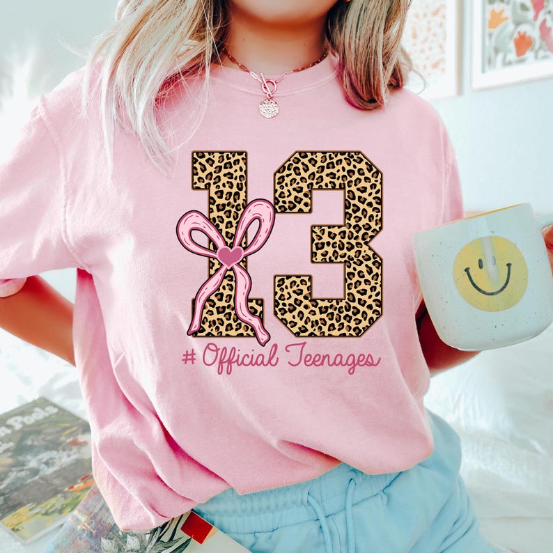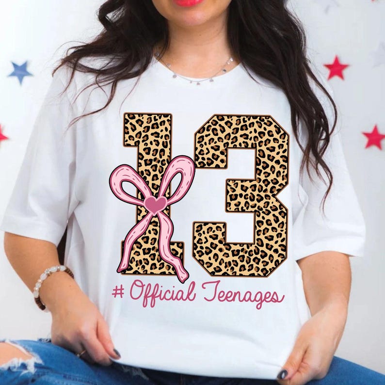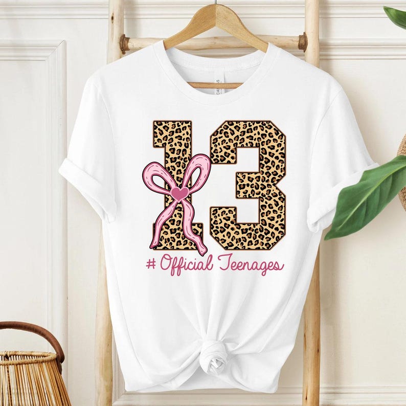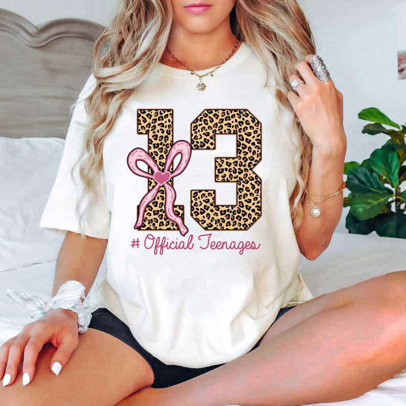 Thirteen Official Teenager Leopard Shirt, Thirteenth Birthday Tee,13th Bday Gift Girl,Coquette Bow Shirt, Coquette Birthday