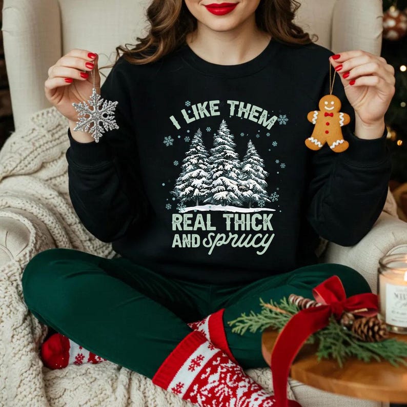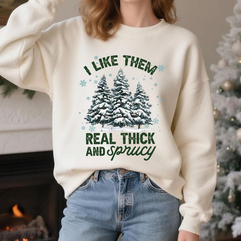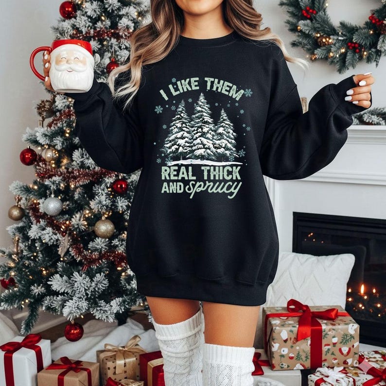 Vintage I Like Them Real Thick And Sprucey Shirt, Cute Christmas Shirt, Funny Christmas Shirt, Xmas Holiday Sweatshirt, Retro Christmas