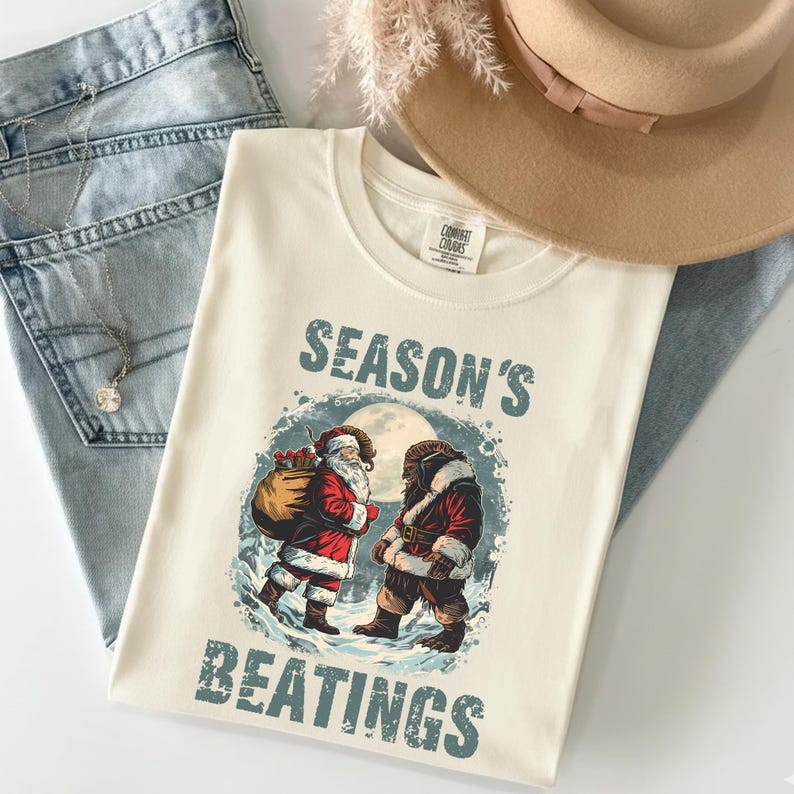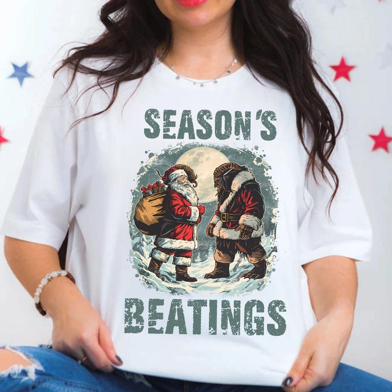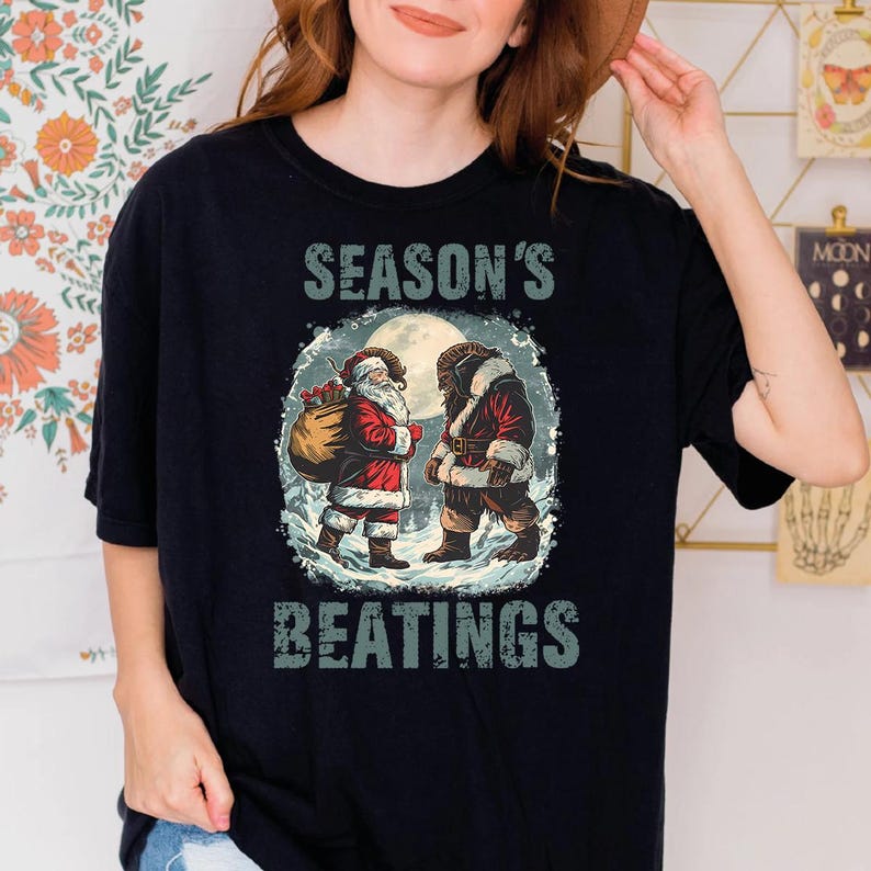 Vintage Krampus vs Santa Holiday Krampusnacht Shirt, Season’s Beating Shirt, Dark Holiday Retro Design, Gothic Xmas Battle Shirt