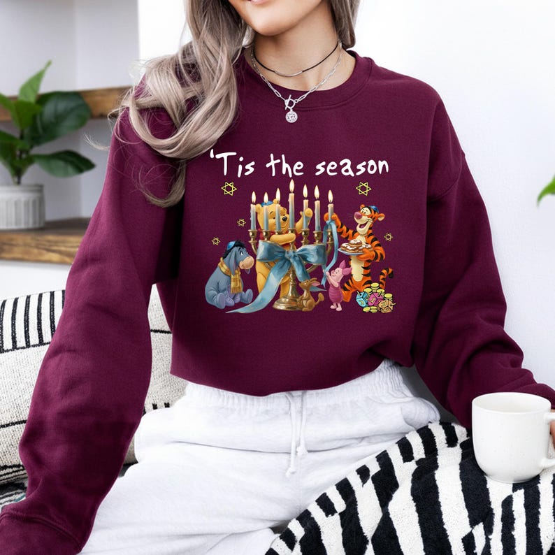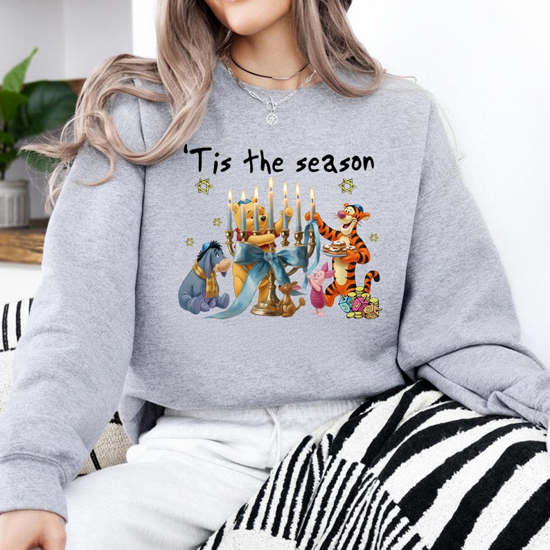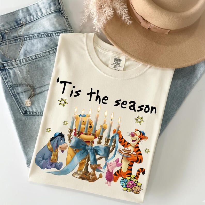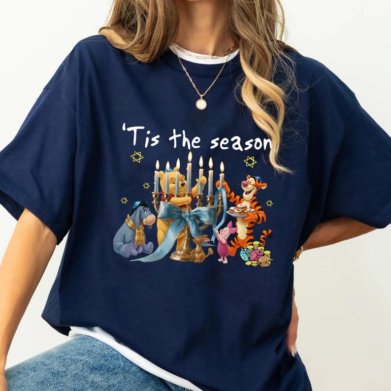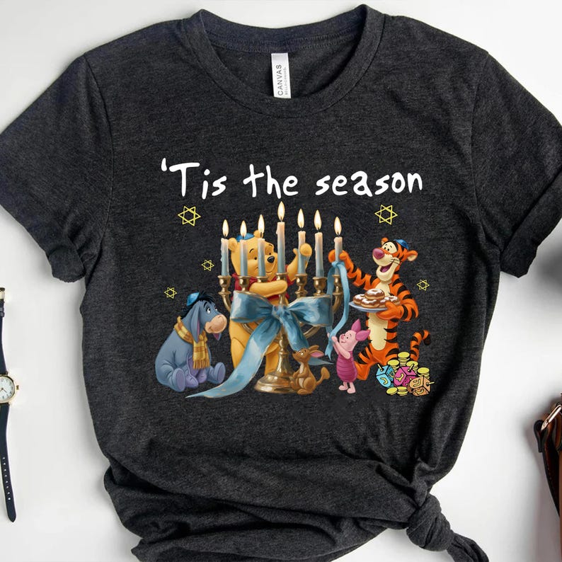 Winnie The Pooh Hanukkah Menorah Shirt,Tis The Season Christmas, Disney Jewish Holiday Tee, Pooh Bear and Friends Festival Of Lights Outfit